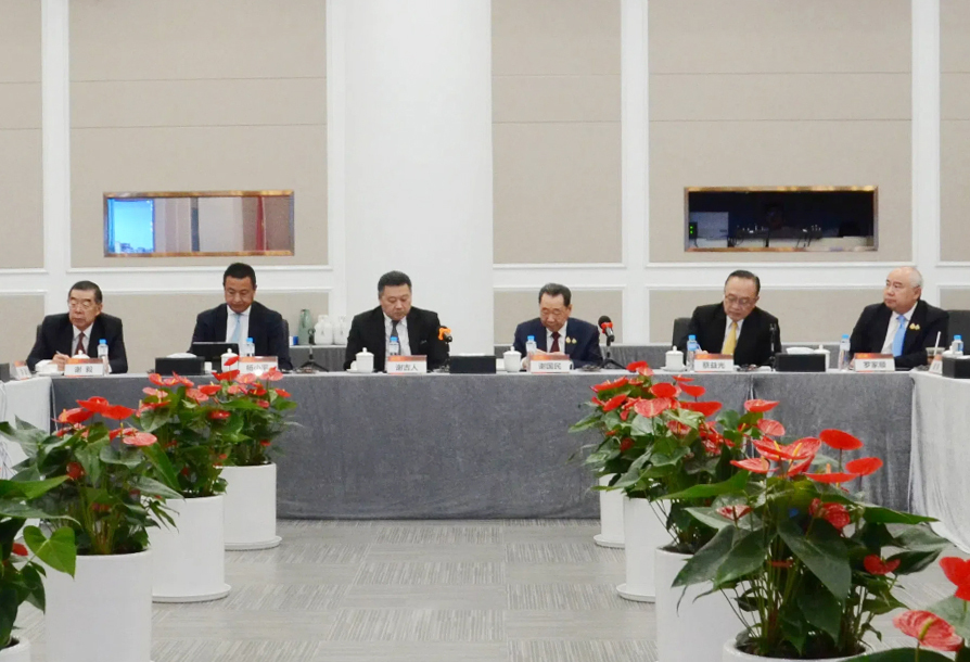 ▲谢国民集团资深董事长、谢吉人集团董事长同部分现场与会人员及园区青年干部代表合影留念