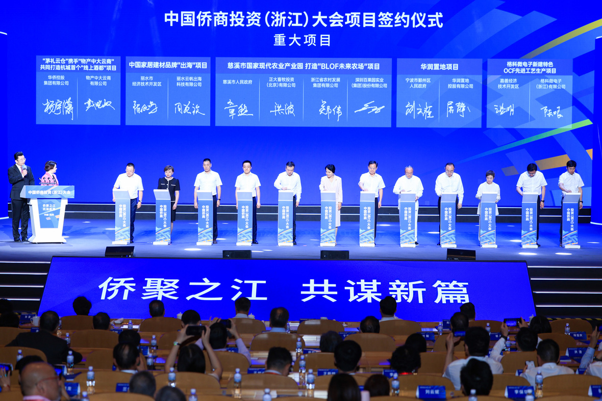 7月31日,由中国侨联、浙江省人民政府共同主办的中国侨商投资(浙江)大会在杭州举行。大会以“侨聚之江 共谋新篇”为主题,来自30余个国家和地区的800余名侨商和侨界人士相聚一堂,共叙乡情友情、共商合作发展、共创美好未来。浙江省委书记、省人大常委会主任易炼红,中国侨联党组书记、主席万立骏出席大会并致辞。浙江省委副书记、省长王浩主持大会。中国侨联副主席程红等有关领导出席大会。