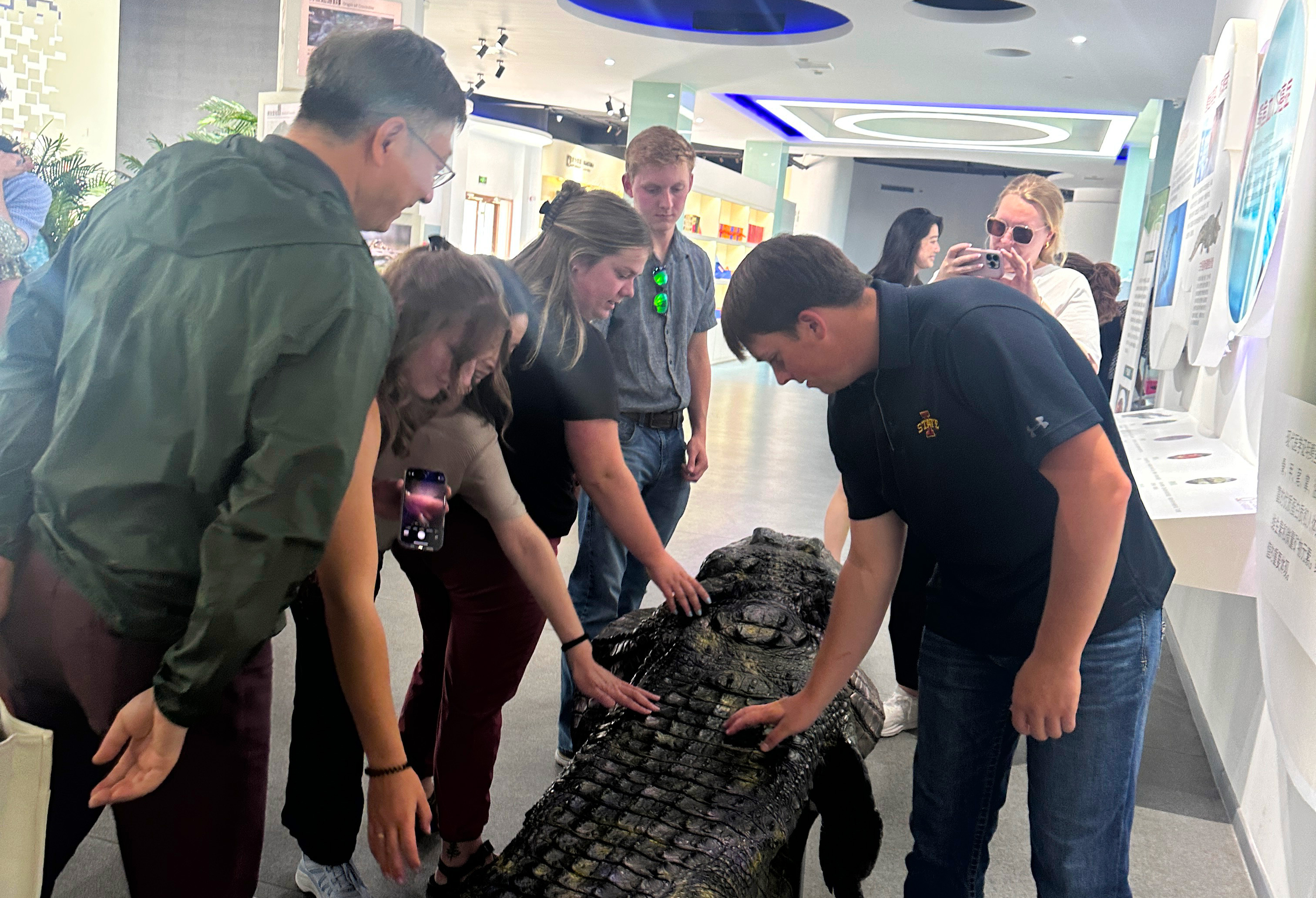 随后,代表团还打卡了蛋鸡场的配套项目bc贷官网泰鳄养殖基地。讲解员刘明宇介绍,该基地养殖鳄鱼4000条,用于消纳蛋鸡场的淘汰鸡,改变了传统的把淘汰鸡焚烧或深埋而造成环境污染的旧做法,并衍生出一系列高附加值鳄鱼商品,吸引代表团成员纷纷选购留念。蛋鸡场每天产生的鸡粪还可以加工成有机肥,用于平谷大桃种植。整个300万只现代化蛋鸡产业项目,形成了“蛋鸡-鳄鱼-大桃”种养结合的生态循环可持续发展模式,既提升了资源利用率,又是环境友好型。